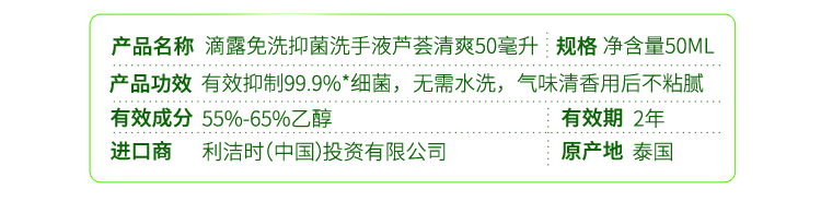 型号:免洗洗手液芦荟清爽50ml