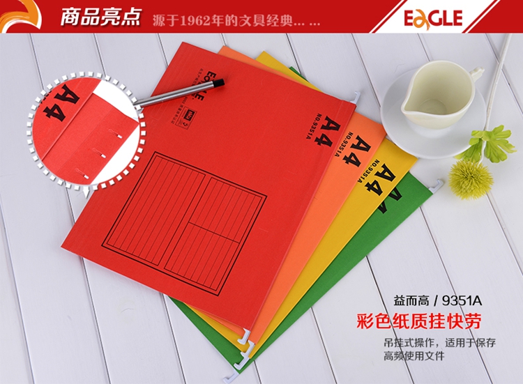 益而高9351A A4挂快劳 吊挂快劳夹 40个/盒颜色随机