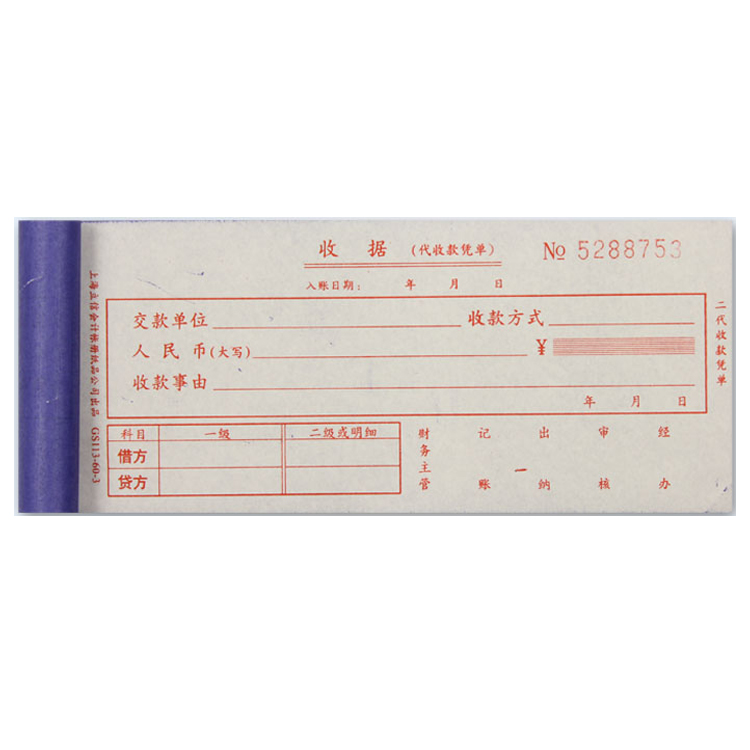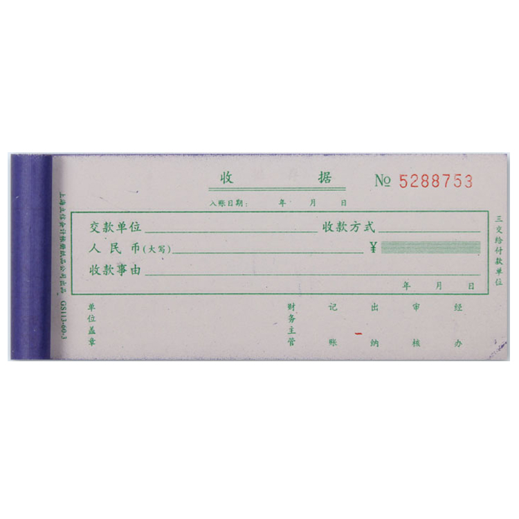 收款收据型号:GS113-60-3尺寸:175mm*75mm